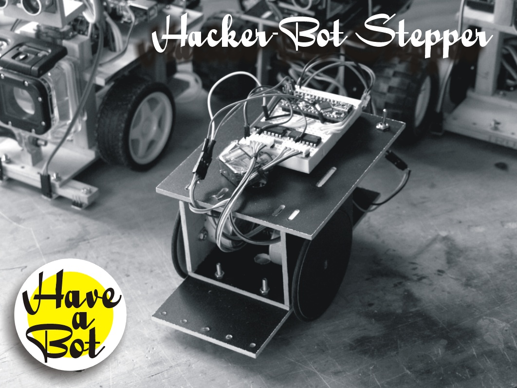 Hoy logré armar el cuarto miembro de la familia Hacker-Bot el Stepper. Todavía está en carácter bastante prototípico, aún tengo que cargarle los sensores y enseñarle a hacer muchos trucos pero al menos ya anda. Lo más lindo es que el Hacker-Bot Stepper ya sabe dibujar.